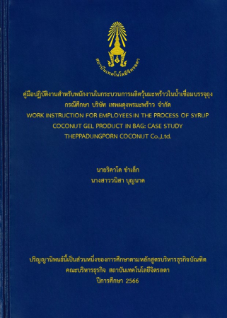 คู่มือปฏิบัติงานสำหรับพนักงานในกระบวนการผลิตวุ้นมะพร้าวในน้ำเชื่อมบรรจุถุงกรณีศึกษา บริษัท เทพผดุงพรมะพร้าว จำกัด